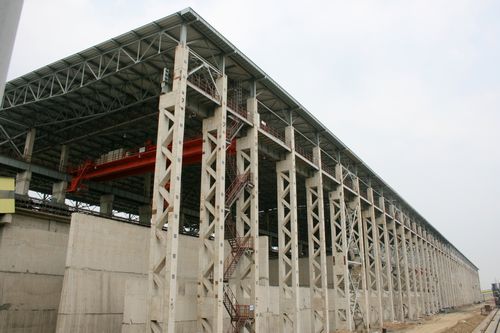 东北特钢集团大连基地环保搬迁项目工程,位于大连市金州区登沙河临港工业园区。我公司承建了其中的原料场和烧结两个标段。原料场项目属封闭式,其建筑面积达28341㎡,长423m,宽67m,檐高约29m,在东北地区属规模最大,全国超此规模的也是凤毛麟角。烧结项目共有构筑物50多个,装备有一台烧结机,其利用系数1.0t/m2.h),年产高碱度冷烧结矿143.5万吨,烧结机最大利用系数1.6t/m2.h),年产167万吨高碱度烧结矿。