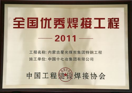 日前,中国工程建设焊接协会2011年度“全国优秀焊接工程评审结束,中国十七冶集团施工的内蒙古星光煤炭集团特钢工程福州港罗源湾港区将军帽作业区一期工程钢管桩项目安徽长江钢厂1#1080m3高炉钢结构安装工程等三项工程荣获“全国优秀焊接工程”奖。