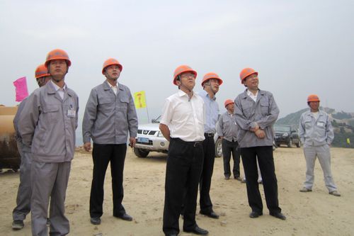 王建国董事长一行首先驱车经过崎岖陡峭山路来到了河南泌阳风电项目3号线13#风机位,仔细地观看了风机机舱吊装过程,并向辛勤奋战的施工人员表示了慰问。在视察过13#风机位、15#、16#风机基础和110KV升压站施工情况,听取了项目部工作情况汇报后,王董事长对泌阳风电工程的安全质量工作和施工人员精神面貌给予了充分肯定,要求项目部管理人员在野外施工作业的艰苦环境下要认真抓好安全和质量工作,并强调,安全工作决不是口号,绝不能掉以轻心,一定要把关系到员工生命健康安全的工作放在首位;项目部管理工作一定要上层次,在日常管理中认真做好风险管控和ERP建设工作;项目部领导要搞好团结,加强学习,把员工的生活安排好。