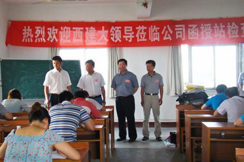 西安建筑科技大学继续教育学院杨凯书记、王春社主任在公司人力资源部副部长杨昌贵的陪同下,对函授站2012级专科班的考试进行了现场检查,认真听取了函授站的工作汇报,对函授站所做的工作及教学管理模式给予了充分肯定,并对今后的工作提出了指导意见。