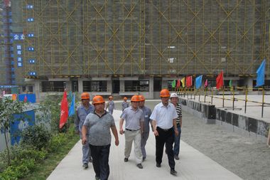 616安徽省安全质量标准化示范工地检查验收专家组在中国十七冶集团总经理助理、中冶置业(安徽)公司总经理王振堂等的陪同下,来到马鞍山向山镇棚户区改造工程项目,对平山地块省标化工地进行检查验收。