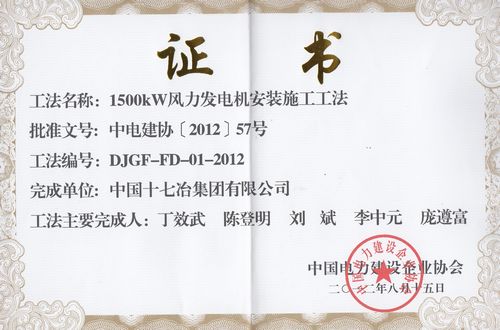 日前,从中国电力建设协会工法评审会获悉,由中国十七冶集团风力发电与太阳能工程技术公司编写的《1500KW风力发电机安装施工工法》通过评审,荣获2012年中国电力行业施工工法。
