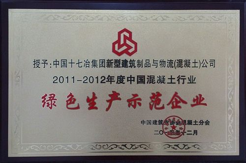 日前,中国十七冶集团新型建筑制品与物流(混凝土)公司荣获由中国建筑协会混凝土分会颁发的2011——2012年度“中国混凝土行业绿色生产示范企业”荣誉称号,此次获得本荣誉的在马鞍山市仅此一家。