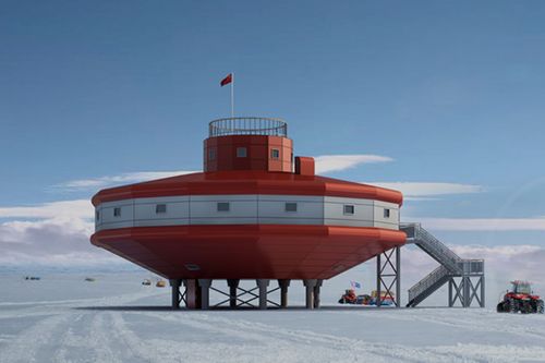 南极伊丽莎白公主地科考站项目位于南极洲东南极地冰盖伊丽莎白公主地区域,属于高寒地区,全年最低温度达-70℃,科考站共分三层即设备层、生活层、观测层,建筑总高度为13米,设计建筑面积1000平方米,其中主体建筑410平方米,采用拼装式模块化轻型金属材料建设。同时建有固定翼飞机冰雪跑道,配备400吨级内陆运输车队设备。