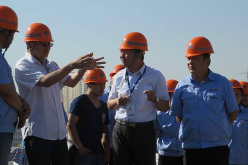 兰州北环路项目部是兰州国资投资(控股)建设集团有限公司党的群众路线教育实践活动的教育示范点。杨学宁副市长一行首先实地查看了我标段的路基和桥梁工程施工现场,深入施工现场了解项目建设情况。在仔细听取了项目经理潘太福关于工程建设情况的汇报后,对项目部克服重重困难,想方设法创造条件打开工作面,在安全、质量、进度等方面所取得的成绩给予了充分肯定,并对施工现场的文明施工、企业文化建设、廉政文化建设及安全文化建设等方面给予了高度评价,同时对进一步加强安全和质量管理工作,不断向前推进项目建设,提出了期望和要求。