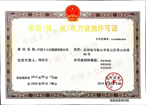1014,中国十七冶集团冶金工程技术公司从国家能源局华东监管局捧回了承装(修、试)电力设施许可证,为公司进入电力行业建设市场奠定了基础。
