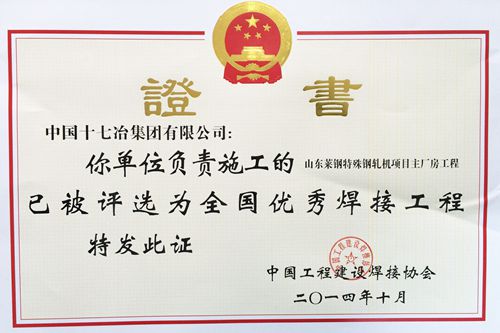 日前,在北京召开的“2014年度全国优秀焊接工程颁奖暨经验交流会”上,中国十七冶集团冶金工程技术公司张家港联峰钢铁3#1080m³高炉、山东莱钢特殊钢轧机项目主厂房等两项工程被授予“全国优秀焊接工程奖”。