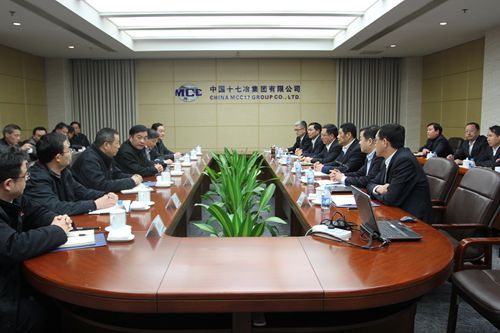 公司总经理刘安义向丁毅董事长一行详细介绍了中国十七冶集团的发展概况、人员结构、组织架构、股权结构、经营管理和改革发展等相关情况以及创新内部组织机构、创新市场营销模式、激活经营模式、创新选人用人机制、完善薪酬管理体制、强化管理服务意识、强化目标责任考核、完善严格内部控制等方面的具体做法