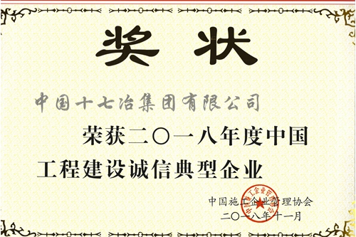 12月10日,中国十七冶集团收到中国施工企业管理协会颁发的“2018年度中国工程建设诚信典型企业”和“企业信用评价AAA级信用企业”奖牌及荣誉证书。