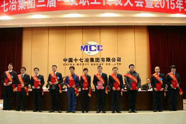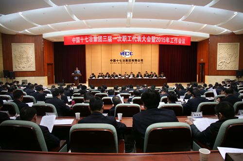 129,中国十七冶集团在公司总部隆重召开三届一次职代会暨2015年工作会议。公司领导喻世功、刘安义、彭毅忠、唐灶荣、尹万云、蔡进、曹永忠、王振堂、朱广侠、陈阳,董事会秘书汤小建、总经理助理、副三总师、各二级公司领导班子成员、总部机关部门负责人、职工代表、劳动模范参加了会议。大会由彭毅忠主持。