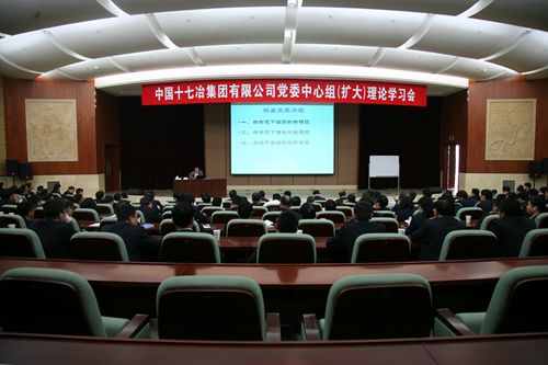 43,中国十七冶集团组织召开党委中心组(扩大)理论学习会,公司在马领导、董事会秘书、总经理助理和副三总师、总部机关室主任以上管理人员,在马各二级公司领导班子成员、在马各项目中层以上管理人员参加了学习。