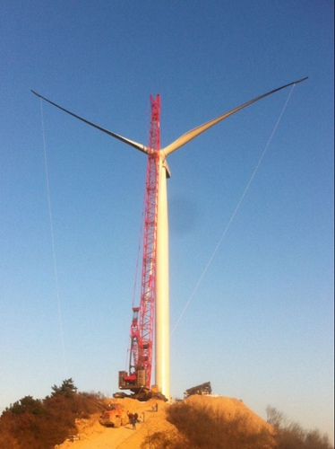 29下午,由中国十七冶集团风力与太阳能发电工程技术公司承建的华电安徽无为二期风电工程首台风机顺利安装完成,拉开了风机安装工程的序幕。