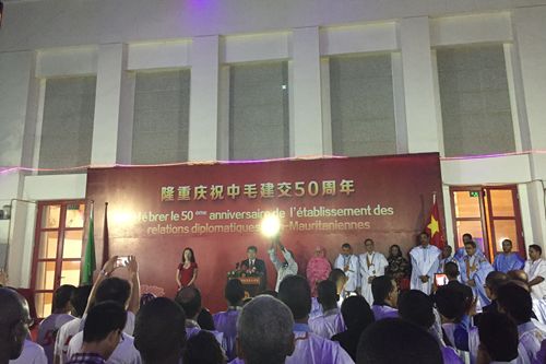 中国驻毛里塔尼亚大使馆为隆重庆祝中华人民共和国与毛里塔尼亚伊斯兰共和国建交50周年,邀请了在毛塔的中资企业代表、华人华侨以及毛塔各界政要,包括毛塔外交部长、交通部长、青年体育部长等参加庆祝活动。活动中,中国驻毛塔大使武东先生发表了热情洋溢的演讲,并陪同毛塔各方官员及中资企业负责人参观了见证中毛建交50周年发展历程图片展。