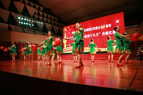 房屋工程技术分公司以一首铿锵昂扬的《迎风飘扬的旗》拉开了大合唱比赛的序幕;管廊、市政、达成公司联队以一首《在希望的田野上》,让观众感受到了十七冶快速发展的勃勃生机;十七冶医院带来的《与梦飞翔的绚丽彩虹》,以医护人员的视角,讲述了医者自豪、天使仁爱的情怀,优美的舞姿和象征着奉献的蜡烛,将比赛推向第一个高潮。路桥工程技术分公司、总部机关和设计分公司联队两支队伍分别带来《鸿雁》和《沂蒙山歌》,无伴奏的演绎方式,让观众久久沉浸在声音的美妙和空灵之中;中冶置业(安徽)公司的《江山》,为大家展现出置业公司砥砺前行,心系民生的央企责任;城建工程技术分公司的《当那一天来临》和风电(物流)分公司的《祖国不会忘记》,用大气磅礴的舞台表现力赢得了满堂喝彩!科技、技术服务分公司联队用一首《共筑中国梦》,展现了中国梦的光辉历程;冶金工程技术分公司带来的《传奇》,诉说着十七冶的坚守与信念;交通工程技术分公司的《光荣与梦想》,抒发表达了在企业发展之路上,十七冶人奋发图强的精神风貌。