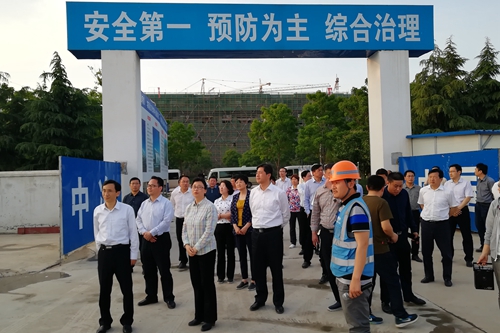 赵德志书记一行听取了项目部对项目总体规划、施工进展的报告并查看了施工现场情况,对项目部在工程进度、安全、质量、扬尘治理等方面所作出的工作给予了高度赞扬。赵德志书记表示,该项目是淮北市重点项目,希望十七冶在确保工程安全和质量的前提下,精心组织,科学安排,确保工程稳步、有序推进。