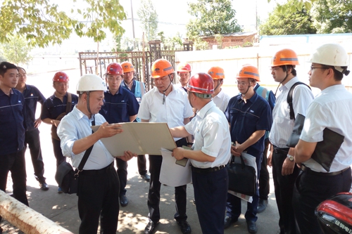 孙伟副总经理在听取了中船九江工业有限公司董事长肖坤所作的工作汇报后,深入项目施工现场,实地查看了综合实验楼、售后服务中心工程质量情况,就工程质量、安全和现场环境等方面与项目负责人进行交流。孙伟副总经理高度肯定了项目管理工作所取得的成效,他要求施工单位做好夏季防暑降温工作,确保安全生产有序,中船九江公司加快组织协调力度,争取项目早日投入使用, 为中船集团发展做出更大的贡献。
