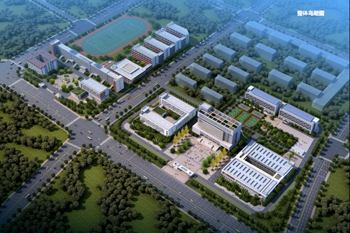 工程位于安徽泗县东二环路与二环北路交口东北角,设计拟建试验楼、实训楼、综合办公楼、宿舍楼及相关配套设施,总建筑面积约50000平方米。其中教学楼位于西地块的东南角,为一栋5层建筑和1层裙房,主要功能为教学楼和报告厅;综合办公楼位于东地块的中心,为一栋9层建筑,主要功能为会议室、图书室、办公室和学生活动室;实验楼位于东地块的西南角,为一栋4层的建筑,主要功能为实验室;宿舍楼位于东地块的北侧,为两栋6层的建筑。
