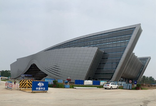 滁州高教科创城文体活动中心工程是安徽省“861”重点工程,也是滁州市十大重点工程之一,工程包括手球馆、文化中心及游泳馆。手球馆为弦支穹顶结构,文化中心及游泳馆为纵横相交异形桁架结构,飘带为异形树状柱加异形网架结构。其中手球馆弦支穹顶区域最大跨度为76米,悬挑桁架最大悬挑为33米,游泳馆最大跨度38米,文化中心屋盖钢结构最大跨度44米。工程框架结构多为“圆弧形”异型结构,屋面多为大跨度钢网架钢结构,工程采用大量的曲线设计,呼应建筑 “飞燕”及“祥云”的设计立意。
