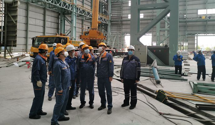 在现场,冶金分公司副经理贾正国详细向盛更红董事长介绍了疫情发生以来项目部对施工人员采取的系列防疫措施以及复工后的现场施工的安全、质量管控措施和工程进展等情况。实地勘察施工现场后,盛更红董事长对湛江炼钢、精炼项目疫情防控与生产经营两手抓的具体做法表示了充分的肯定,同时强调,当下仍处于疫情防控关键时期,项目部仍要继续认真贯彻落实有关疫情防控举措,争取做到疫情防控和施工两不误;要做好施工现场安全防护措施,确保施工人员生命健康与安全;要抓进度抢工期确保2020年3月31日精炼项目3#RH炉热试。