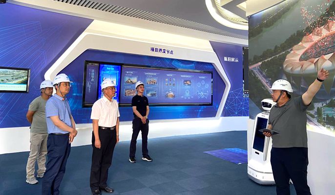 周学海董事长一行参观了兰州奥体中心科技展示馆,并查看了兰州奥体运动员公寓施工现场。兰州市体育局副局长张磊介绍了兰州奥体中心运动员公寓总体概况及工程建设总体进展情况。周学海董事长表示,兰州奥体中心的建成将有力推动兰州旅游发展,满足地方旅游业的需求,对于增强文化产业活力有着积极的意义,希望与十七冶在接下来的工作中通力合作、积极协调,为兰州奥体中心项目建设添油助力。