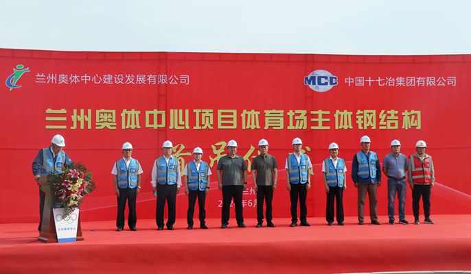 6月25日上午,中国十七冶集团兰州奥体中心体育场工程罩棚钢结构顺利实现首次吊装。兰州市政府副秘书长淡汉荣,兰州市体育局副局长张磊,中国十七冶集团副总经理刘宇、张杰,副总工程师李中元、史朝华,西北公司安全负责人时华钢,建筑分公司经理顾奎,冶金分公司党委书记陈鑫慧等参加了吊装仪式。