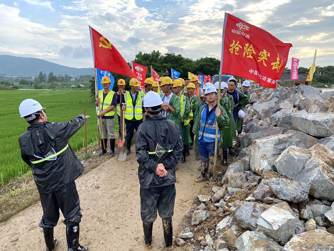连日来,连续强降雨侵袭了长江流域,一轮洪峰倾泻而下,马鞍山市当涂县主要河流水位不断上涨,当涂县政府启动一级防汛应急响应,防汛工作形势异常严峻。“就算把群里消息翻看多少遍,都比不上踏在园区的大地上来的的安定。”作为抗洪防汛组长的李忠明刚结束雄安新区项目的工作,在自身伤病没有痊愈的情况下,马不停蹄转战到当涂项目,紧急召开抗洪抢险工作动员部署会,组建四支共计50人的抗洪抢险突击队,并为突击队授党旗及队旗;不歇片刻的跑遍县城收集物资编织袋2000余条、雨衣100余件,铁锹、救生衣等救援物资若干,组织挖机两台、抢险救援车辆四台,整装待命。