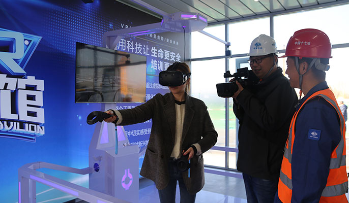 在施工现场,观摩团实地体验了人脸识别系统、扬尘监测系统等模块,项目部通过智能化施工系统,建立片区项目信息化生态圈,改变传统施工管理模式,通过智慧工地APP,项目管理人员可以做到在现场检查过程中发现问题,即刻上传问题与照片,督导立刻整改,有效防范和减少各类安全事故,日常管理更加便捷。在VR体验室内,大家以第一人称视角,亲身模拟体验施工施工环境、各项作业环节及安全事故情景,通过视觉、触觉、听觉让人员身临其境,此项技术的应用,不仅提高了现场施工人员的安全意识,也更好的对施工质量进行了管控。