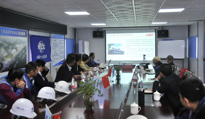 项目经理结合项目视频,就项目建设概况、物资供应、工程质量管控、安全环保管理、过程工序管控、科技创新及新技术应用等进行了解,彰显项目建设中精细化、技术化、安全化管理水平。同时项目党支部通过展板、照片等重点介绍项目在当地践行央企社会责任、党建工作开展等情况。党支部将继续充分发挥战斗堡垒作用和党员的先锋模范作用,传递红色能量,将“遵义会议精神”落到实处,全力冲刺赶工期,展现党员干部“干在实处、走在前列”风采。