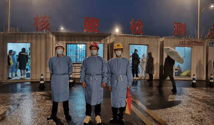 除了防疫设施正在如火如荼建设中外,中国十七冶集团积极响应政府号召,开展疫情防控志愿服务活动。管廊工程技术分公司马鞍山“宁博一体化”项目积极奉献、主动作为,全力配合博望区政府做好疫情期间小区围挡封闭工作。3月16日晚,项目疫情防控志愿者服务队分批同时对11个小区进行围挡封闭,防疫志愿者们自当日傍晚18点至次日凌晨4点,顶风冒雨连夜封闭围挡共计800余米。江苏分公司苏州项目部应政府和公司号召,组织志愿者参加社区疫情防控部门核酸检测活动,志愿者们身穿防护服帮助当地社区维持秩序,引导居民做核酸检测。整个核酸检测活动长达9个多小时,项目部志愿者们没人喊累,全力以赴投入抗疫工作中。