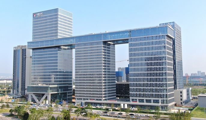 中冶集团西北区域总部高133米,3栋高层建筑通过连廊贯通,整体建筑极具个性和美感。但在这视觉震撼的背后,却给项目部提出了巨大技术难题。在连廊施工中,创优团队针对实际情况,采用“钢结构液压同步提升”技术,对框架结构、玻璃幕墙安装、防摆动安全等关键工序及安全防护措施进行技术优化创新,规避了以往连廊施工平台受限、工效下降等不利因素。相关成果先后获评第二届“新基建杯”、第三届“优智杯”、第八届“秦汉杯”等BIM大赛奖项,进一步擦亮了十七冶超高层工程建设品牌。