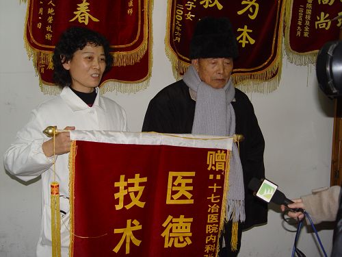 111,一位曾参加过抗美援朝的老人,让子女们搀扶着专程来到十七冶医院心内科病房,给心内科主任张羚和医生甘国钧送来一面锦旗,感谢医生抢救了他的生命,使他恢复了健康。老人还专门请来了电视台记者,替他宣传感谢十七冶医院的医生。