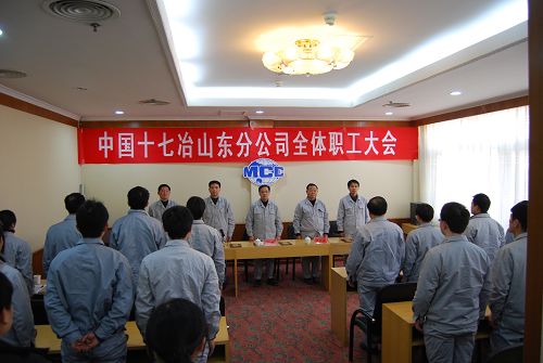 元月31日下午,中国十七冶集团有限公司山东分公司第一届全体职工大会胜利召开,分公司全体职工参加会议。