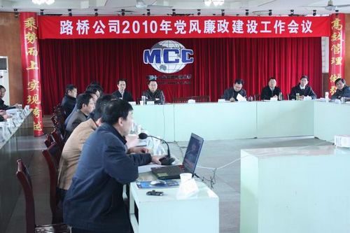 42下午,路桥公司召开2010年党风廉政建设工作会议。十七冶纪委副书记韩伟群、路桥公司全体领导班子成员及有关方面负责人共50余人参加了会议,会议由路桥公司纪委书记季学武主持。