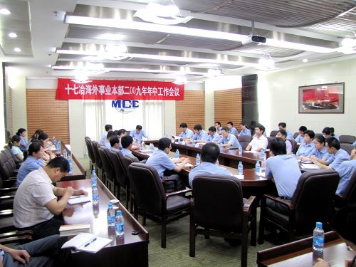 会上,首先由海外事业本部副总经理徐峥、闵永欣分别传达学习了公司董事长、党委书记康承业在公司2009年年中工作大会上的重要讲话和公司总经理王建国在公司年中工作大会上的工作报告。