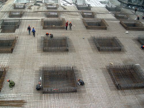 为确保这项重大工程的质量和工期进度,十七冶城建公司芜湖项目部在土方工程大开挖和主楼挖孔桩正在进行中的状态下,采取先裙楼、后主楼、反梁底板分块绑扎、浇注的程序和方法进行施工。项目部以争创省文明工地和力夺“黄山杯”为目标,从土方挖运、反梁基础砖模砌筑、防水材料粘贴、钢筋制作绑扎等每道工序,都是严格按照技术规范要求精心安排,精细施工。并将之前开展的“六赛、六比、六看”劳动竞赛活动延续到该分部工程施工中,力争在春节前实现裙楼结构出地面和主楼挖孔桩完、底板完的目标,以优异成绩向新的2010年献礼。
