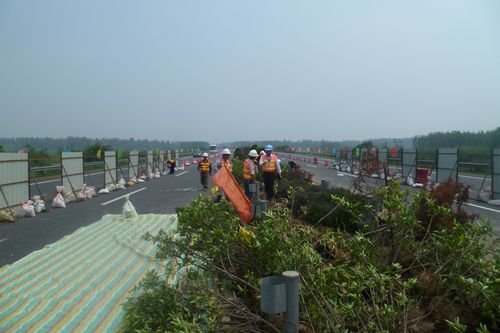 为保证施工期间交通畅通和工程顺利推进,项目经理部针对宁连高速公路交通繁忙、车流量大的实际状况,在施工期间与交警、路政部门协作配合,采取各种有效的缓堵、安保措施,严防交通事故和生产责任事故的发生,在高标准、高质量、高效率完成施工任务的同时,全力以赴做好高速公路的安全畅通工作。目前,B匝道桥14#墩、C匝道桥7#墩桩基施工准备工作已经进入尾声。
