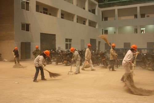 冒着濛濛细雨,带着饱满的热情大家开始了清扫工作。清扫队伍分为2个小组,大家拿着铁锹,扫把,对现场的破旧木板,废弃铁块等进行分类整理,同时清扫了现场的施工垃圾,甚至于用手清理了钢结构缝隙里的灰尘。
