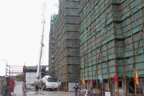 “轩和苑”小区项目坐落于上海市金山区亭林镇,总建筑面积为21515平方米,由6栋八层异形柱剪力墙结构住宅楼及一栋地下自行车库组成。该项目自开工以来,项目部精心配置人力资源、科学组织施工、细化网络节点,克服低温、多雨等诸多困难,创造条件抢工期,顺利实现了2#楼、5#楼封顶,其工程质量、安全、进度均受到各方好评。