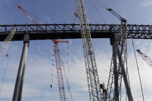 吉钢2#高炉上料通廊高跨段合拢