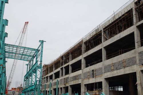 转炉综合楼结构封顶,标志着新疆八一钢铁150t转炉工程施工,进入到了电气、仪表、设备、管道安装的关键阶段。