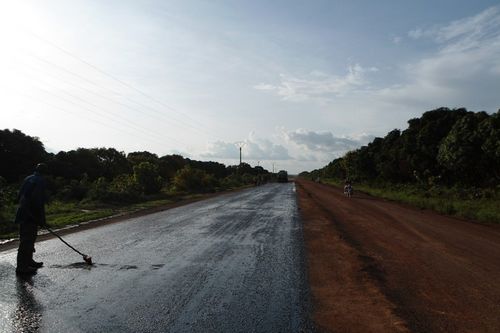 科特迪瓦130项目今年2月中旬才开始正式进行路基施工。而采用红土砾石铺筑路基、底基层、基层等技术都是公司全新课题,此前并无相关经验。项目部克服对当地施工环境不熟悉等诸多困难,全体参战员工团结一心,奋力拼搏,仅用4个多月时间,成功将路基、底基层、基层等各工序快速向前推进。