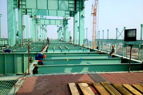 为确保“15.9”转炉投产计划,保证高层框架按照节点封闭,冶金工程技术公司宝钢湛江炼钢工程项目实行24小时作业,最大效率地使用吊装机械设备,全面掀起了大干的热潮。随着时间的推进,炼钢主厂房高层框架已从1/14线开始陆续封闭,按照节点计划到10月31日封闭至17线,到12月20日封至20线,项目部全体员工将继续发扬“高效严谨、精细务实”的企业作风,确保工程顺利推进。