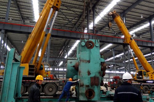 该水压机单体设备重96吨。针对场地狭小,吊装回转半径小,单体设备重量大且在封闭的厂房内吊装等不利影响,为了确保水压机设备顺利吊装,项目部以“一天也不耽误、一天也不懈怠”的进取精神,积极践行“24小时工作法”,精心组织参建人员进行反复讨论、验算,最终确定吊装方案,设备一次就位成功,受到业主的好评。