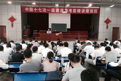 为认真贯彻落实董事会对建造师队伍建设的工作要求,中国十七冶集团于6月22日至7月2日举办了2015年一级建造师第二期考前精讲培训班。来自总部机关、各二级公司及项目部的400多名员工参加了培训学习。