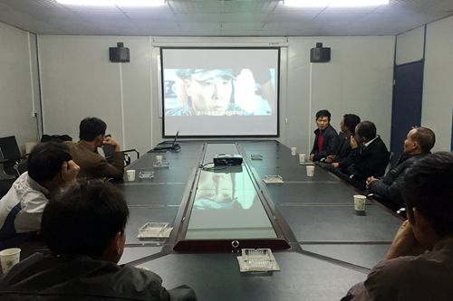 秣陵新市镇安置房项目部抓住近期天气晴好的有利时机,围绕“大干100天”的奋斗目标,掀起大干热潮,施工作业人员加班加点抢工期,推动工程顺利向前进展。项目部把会议室变成了临时“电影院”,为施工作业人员播放电影,使他们从紧张的施工任务中暂时解放出来,丰富了他们的精神文化生活。