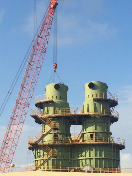 本系统为1#600TPD 双膛竖窑焙烧系统,其结构设计高度52.5m,其中窑本体窑壳设计高度35.72m。此窑壳最后一段的吊装受到了业主、监理高度关注。面对工期紧、图纸复杂、气候多变以及安全危险系数高等不利因素,项目部以“一天也不耽误、一天也不懈怠”的中冶精神,积极践行“24小时工作法”,优化吊装方案,合理组织劳动力,积极与设计、业主及监理沟通联系,最终顺利完成窑壳的安装任务,完成节点要求,为后续工序奠定了基础。