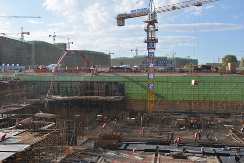 主行政楼层数为14层,建筑高度为54.3m,总建筑面积为47284.2m2 ,结构类型采用框架-剪力墙结构。主行政楼自开工以来,甘肃分公司项目部多次与业主、设计院沟通,不断优化施工方案,精心组织,统筹施工,克服了诸多不利因素,不断推进工程进展。主楼筏板浇筑,标志着主行政楼的施工将全面展开,项目部将争取冬休前完成主体结构封顶。