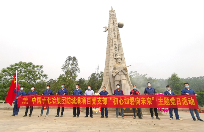 3月28日上午,中国十七冶防城港项目党支部全体党员赴防城城北烈士陵园开展“初心如磐向未来”清明节祭奠活动,重温入党誓词,缅怀革命先烈。