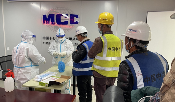 为严格落实“外防输入,内防反弹”的疫情防控要求,项目部提前与当地办事处疫情防控中心沟通联系,协调组织医护人员到项目部为广大工友采样,同时安排专人维持现场秩序和消毒消杀,核实待测人员的健康码、检测登记码等个人信息,尽可能地降低疫情传播风险和交叉感染几率。