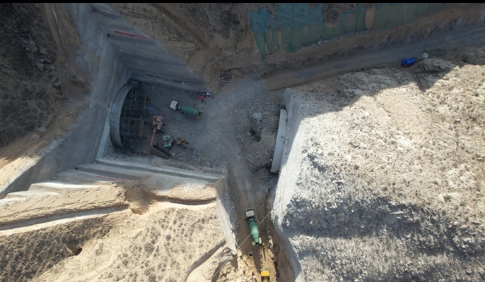 G30连霍高速兰州清忠段扩容改造项目是国家“一带一路”沿线重要交通建设项目之一,也是兰州市的重点建设项目之一。该项目东与连霍国家高速相接,西与京藏国家高速和兰州机场高速相接。项目建成后,将助力西部地区经济发展。其中凤凰山隧道是该项目的控制性工程,全长3945米,双向6车道,属于特长性、大跨度公路隧道。隧道地处兰州市榆中县,沿线高山起伏,山谷沟壑险峻,水文地质情况复杂,给项目建设造成了严峻的挑战。面对重重困难,项目团队全体工作人员秉承“一天也不耽误,一天也不懈怠”的企业精神,积极践行“24小时工作法”,精心布置、积极作为,在大山之中,修筑了一条全长20余公里的施工便道通向隧道出口,建设了大量隧道附属临建工程,使凤凰山隧道出口具备正式进洞的条件。